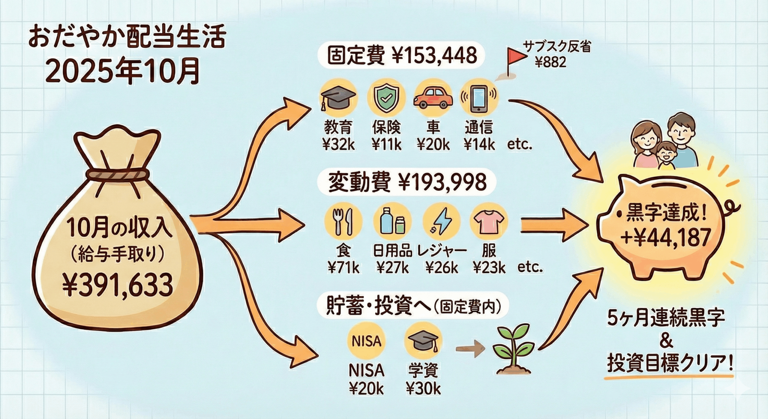 こんにちは、こつこつ配当パパです。11月ももうすぐ終わり。今年も残すところあと1ヶ月となりますね。今回は、2025年10月の家計簿を公開します。