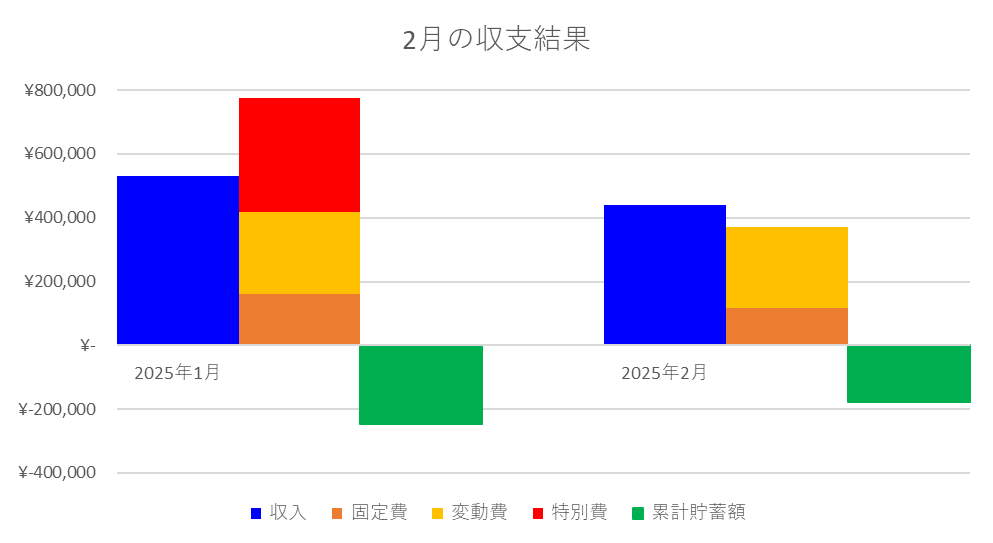 2月の我が家の家計状況は以下の通りです。